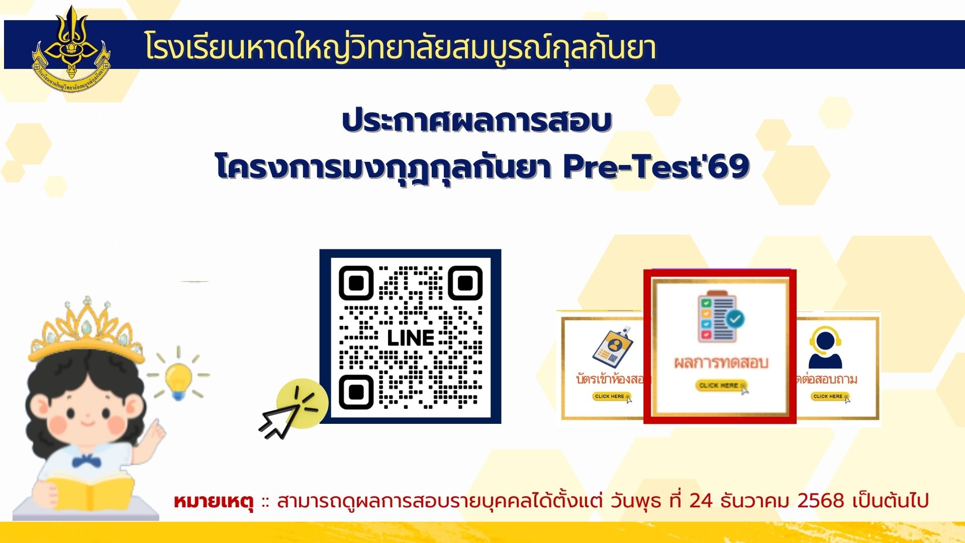 ประกาศผลการสอบโครงการมงกุฎกุลกันยา PRE-TEST'69
