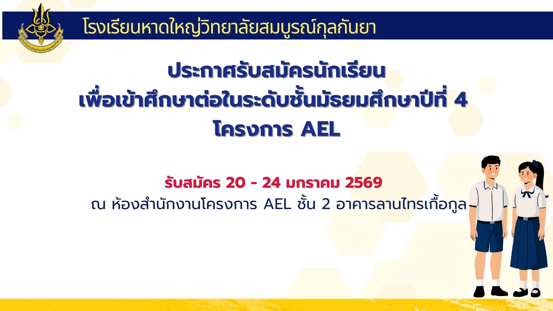 ประกาศรับสมัครนักเรียนเพื่อเข้าศึกษาต่อในระดับชั้นมัธยมศึกษาปีที่ 4 โครงการ AEL