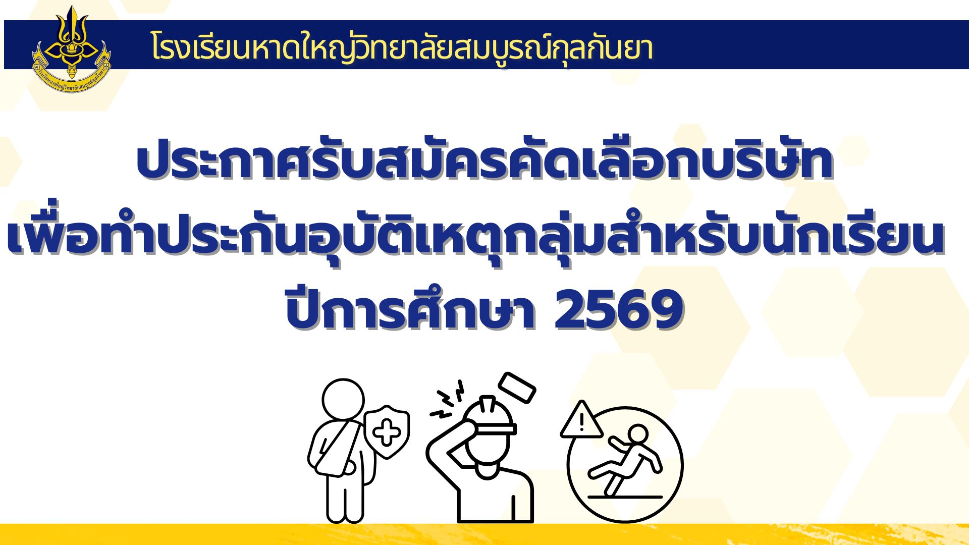 ประกาศรับสมัครคัดเลือกบริษัท เพื่อทำประกันอุบัติเหตุกลุ่มสำหรับนักเรียน ปีการศึกษา 2569