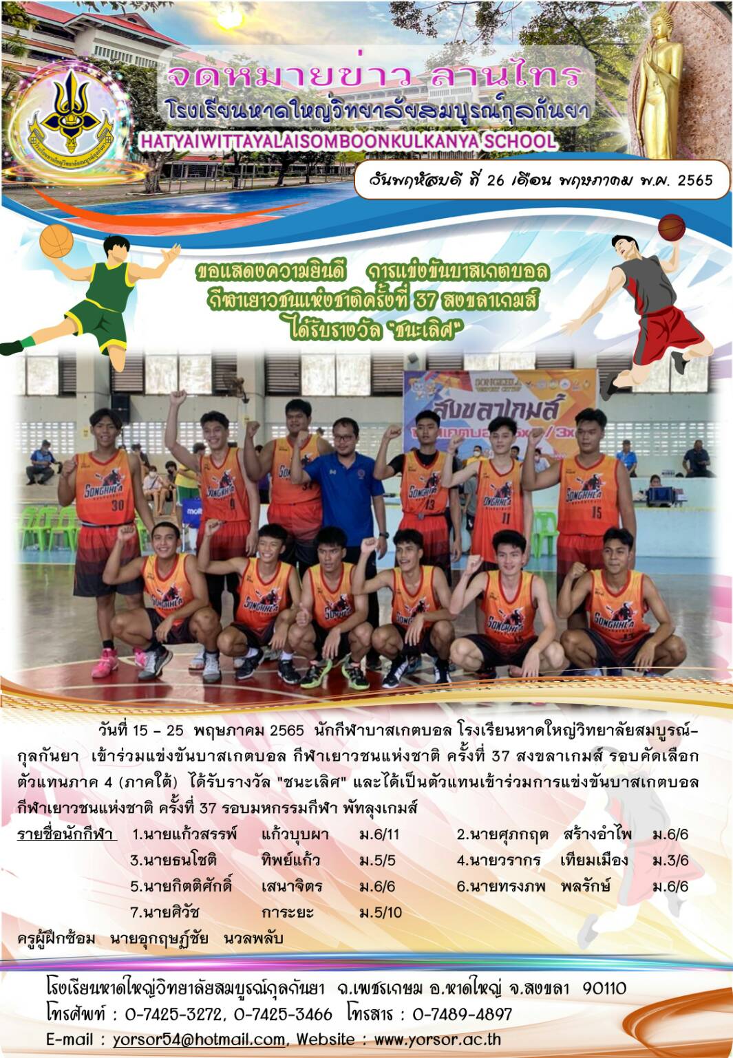 ขอแสดงความยินดีกับนักกีฬาบาสเกตบอล ได้รับรางวัลชนะเลิศ