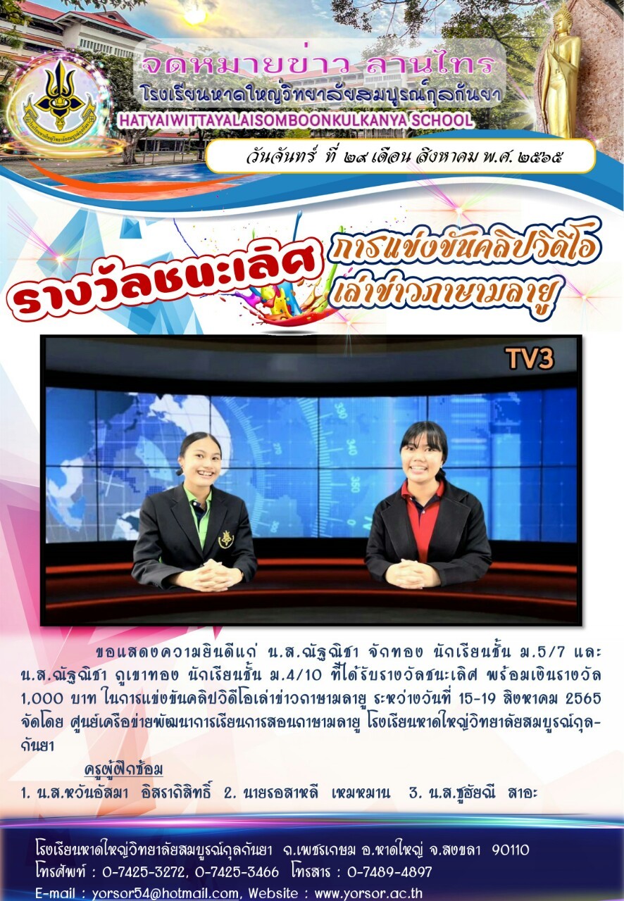 ยินดีกับนักเรียนการแข่งขันคลิปวิดีโอ เล่าข่าวภาษามลายู