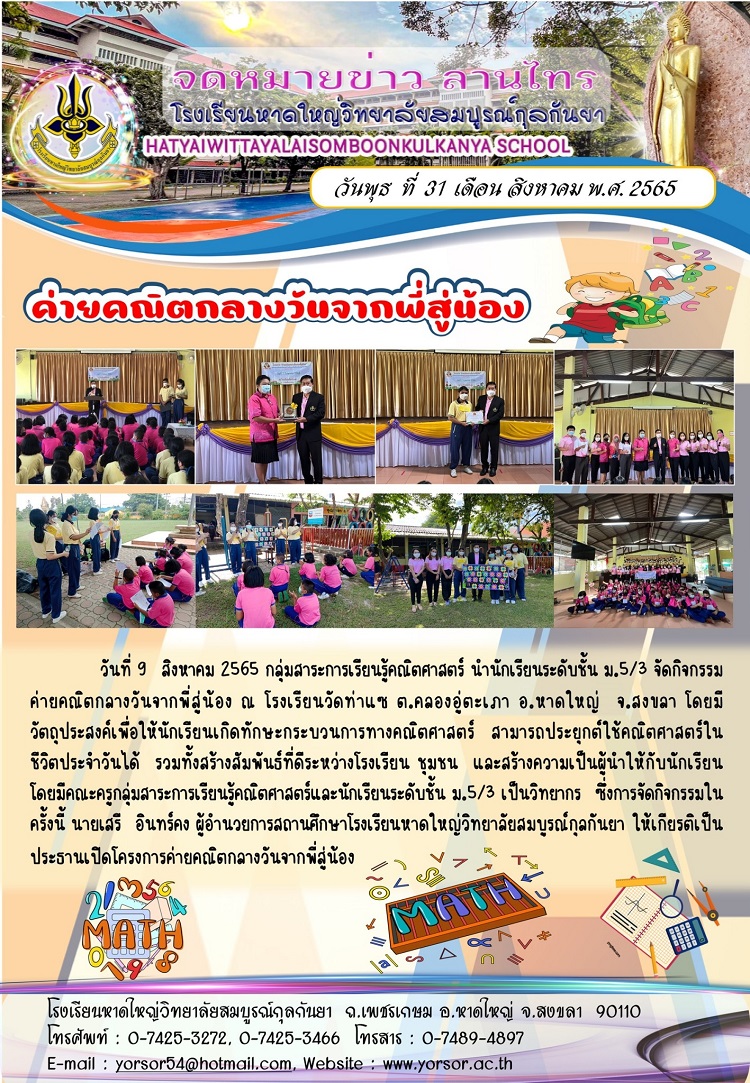 ค่ายคณิตกลางวันจากพี่สู่น้อง
