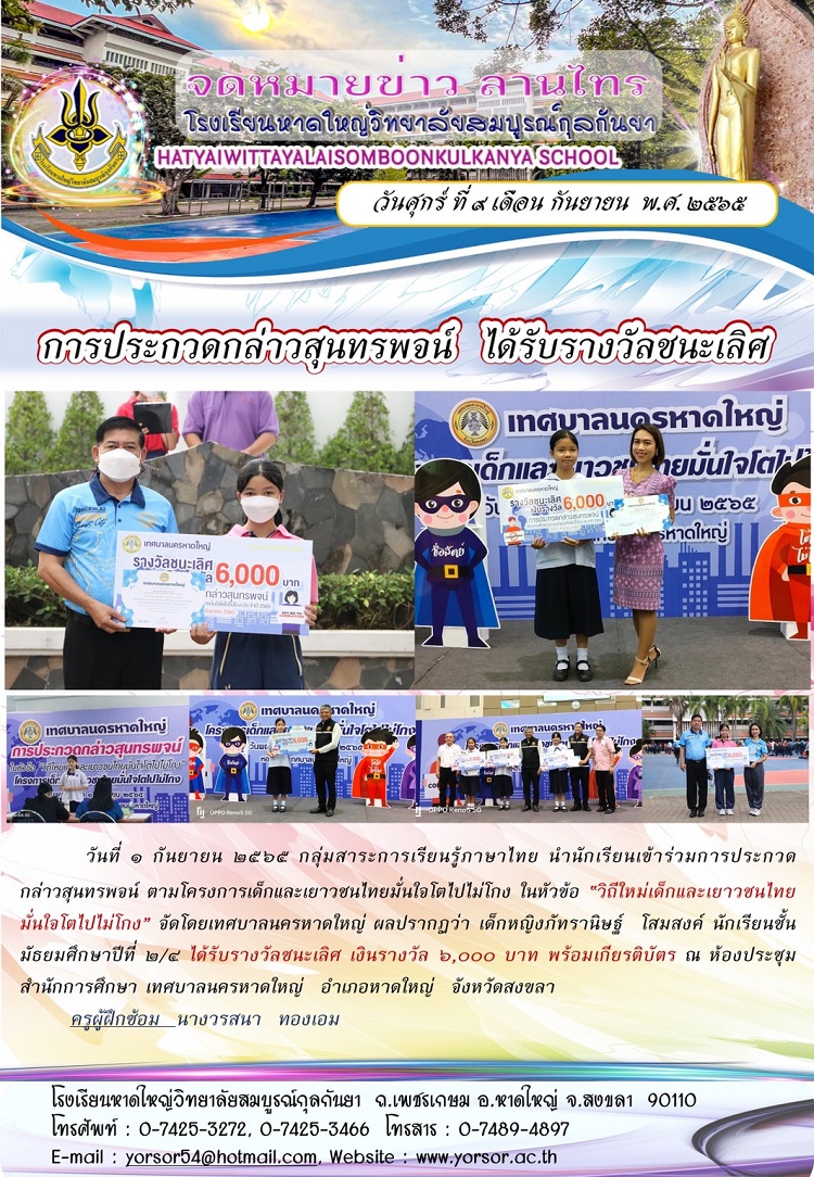 ยินดีกับนักเรียนประกวดกล่าวสุนทรพจน์