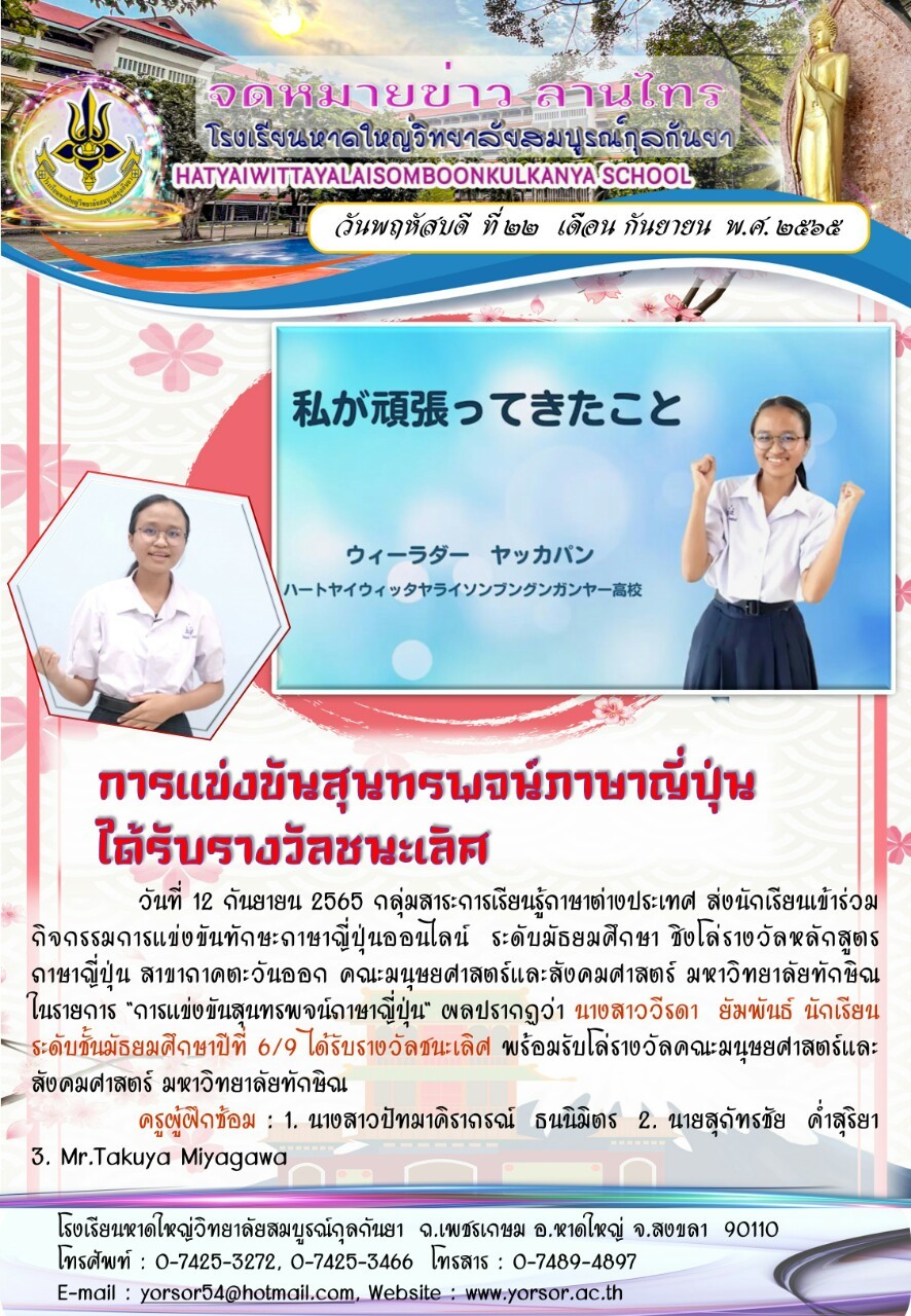 การกล่าวสุนทรพจน์ภาษาญี่ปุ่น ได้รับรางวัลชนะเลิศ