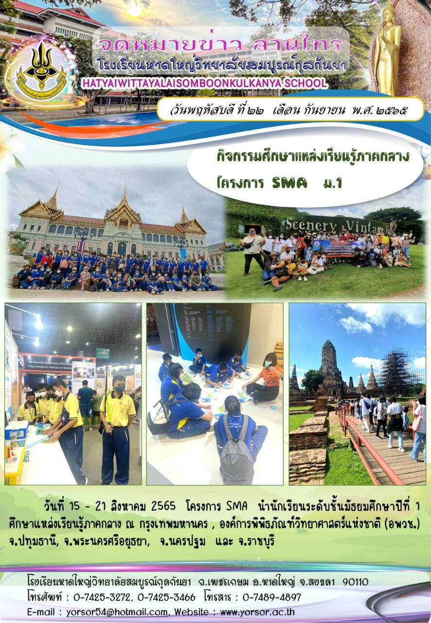 กิจกรรมศึกษาแหล่งเรียนรู้ภาคกลาง โครงการ SMA ม.1