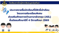 ประกาศรายชื่อนักเรียนที่มีสิทธิ์เข้าเรียนโครงการห้องเรียนพิเศษ ส่งเสริมศักยภาพด้านภาษาอังกฤษ (AEL) ชั้นมัธยมศึกษาปีที่ 4 ปีการศึกษา 2569