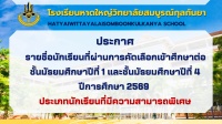 ประกาศผลผู้สอบผ่านการคัดเลือกเข้าเรียน ชั้นมัธยมศึกษาปีที่ 4 ปีการศึกษา 2569