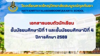 เอกสารมอบตัวนักเรียน ชั้นมัธยมศึกษาปีที่ 1 และชั้นมัธยมศึกษาปีที่ 4 ปีการศึกษา 2569
