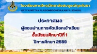 ประกาศผลผู้สอบผ่านการคัดเลือกเข้าเรียน ชั้นมัธยมศึกษาปีที่ 1 ปีการศึกษา 2569