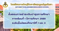 ขั้นตอนการชำระเงินค่าบำรุงการศึกษา ชั้นมัธยมศึกษาปีที่ 1 และชั้นมัธยมศึกษาปีที่ 4 ปีการศึกษา 2569